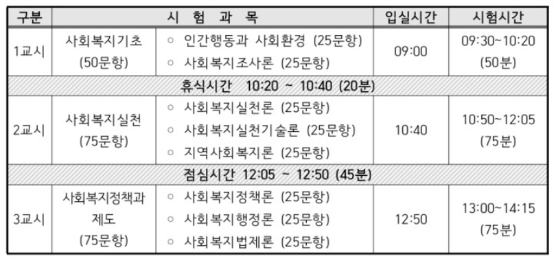 * 모든 과목 시험 문항은 25문항(과목당 25분)총 200문항