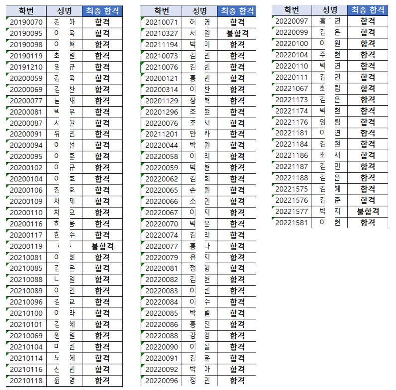 - 졸업시험 응시 결과는 아래와 같으며 각 과목별 점수 및 자세한 결과는 첨부파일 확인 바랍니다.
